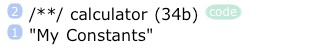 Switching back to the calculator, you can see that the new constants are available for use in every folder.