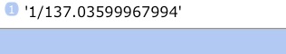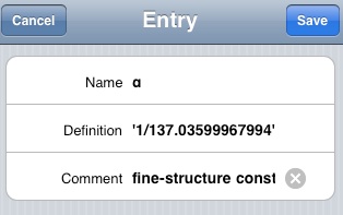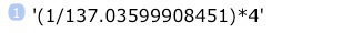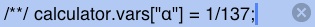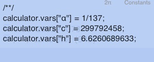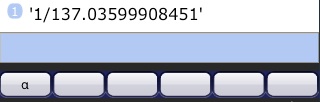 Notice that our new definition is not an expression, but the numerical result for 1 divided by 137. This is for illustrative purposes. We could have defined it as before by typing calculator.vars[“α”] = “‘1/137.0599967994’” (note, though, the double-quotes around single-quotes).