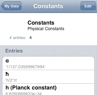 Simply tapping the a constant’s soft-key (or entering it on the edit line) will recall its contents: