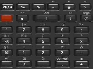 +/- sign reversal key; when editing, changes the sign of the last number entered; when not editing, applies sign reversal to the object (real, complex, vector, matrix) at stack position 1