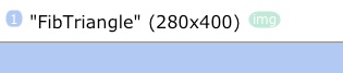 The fibtriangle program produced an image for us, 280 pixels wide and 400 high.