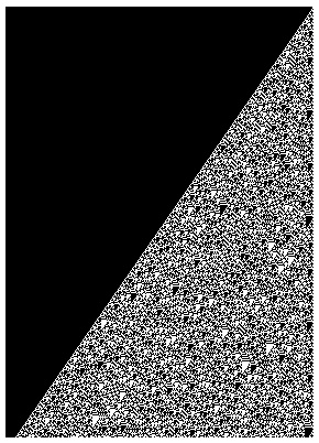 Now, the object of our exploration shall be to automatically produce the first 400 Fibonacci numbers, convert them into visible bits, stack them up, and view the resulting picture.