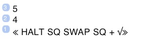 dist_rpl+: ≪ =x =y √(x^2+y^2) ≫ RPL+ (using “immediate algebraic expression”)