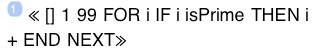 Oh. It should be said: it so happens, that there’s a built-in function, primes, that does the job of PN. It employs a prime sieve (instead of testing every number for primality, as PN does), and is much faster.