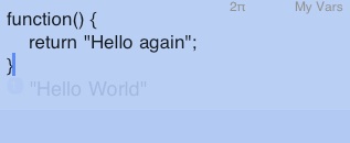 Stack-action-recording aside, “natural math entry” is arguably the easiest way to write a user function, as it looks just like math. ND1 changes these functions into JavaScript. It’s used for short functions that return one result.