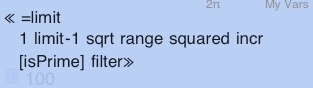 We could adjust our program to maintain a running sum and output its final value along with the primes. (There’s nothing that prevents a function from outputting more than one result. Any number of results can be placed on the stack.)