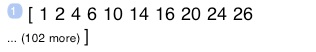 If, again, we want to see the generating integers, instead of the primes, a shift in the bracket does the trick: