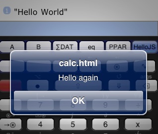 Enter that, type HelloJS, and tap →⊛ (STO) to store this program under HelloJS.