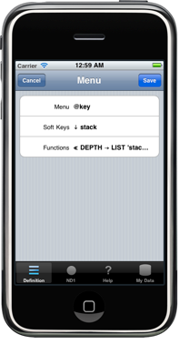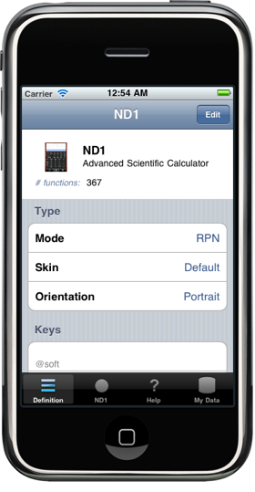 Here’s where you change skins (you can even provide your own key bitmaps and have your very own, unique skin), and where you can define, edit, delete from, add to, any of the calculator’s keys and menus.