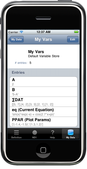 The tab bar will slide up, which allows you to switch to the calculator’s Definition page (change keys and menus), Help page (access online documentation), and My Data page (manage user folders, upload/download data).