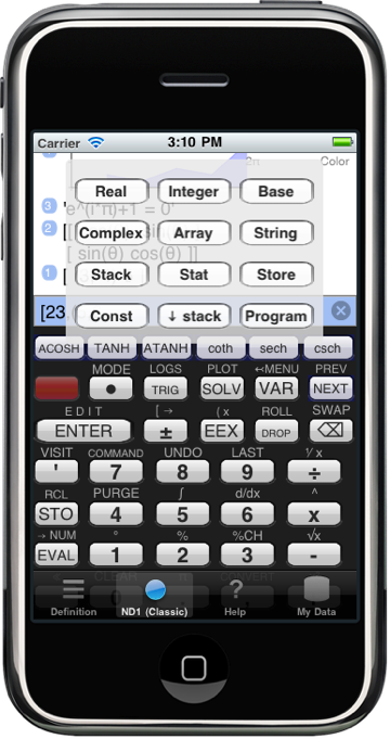 This makes the calculator infinitely versatile. It’s very easy to develop a custom type (it can even be done on the device; no computer necessary) and detailed documentation is available.