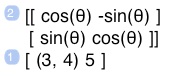 A symbolic matrix and a complex vector * (multiplied) [theta was ‘π/2’]