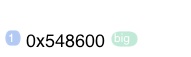 A hex and a binary integer xor (XOR) shift_left_byte (SLB) toBigNum (R→I)