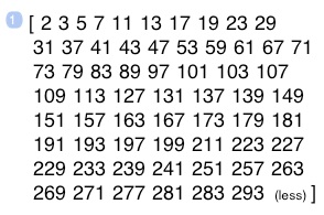 300, primes (produces primes in [0, 300]) linePlot (w/ keepAspect set to false)