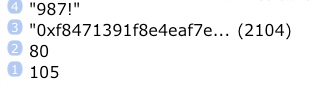 The size reported for the string, 2104, includes the text “0x”, which is not part of the actual data. Subtracting 4 for the length of “0x” and the quotes, the data size is 2100.